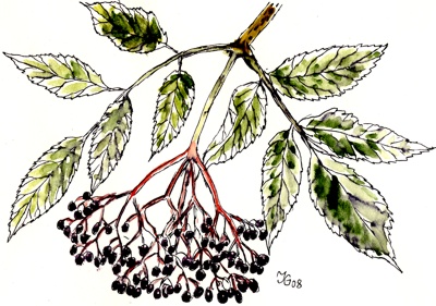 Damit werden die Kopfschmerzen gelindert, die grippale Infekte oft begleiten. Der Cocktail an sekundären Pflanzeninhaltsstoffen wie Flavonoide, Vitamin A , B1, B2, B6 und C, Folsäure, Gerbstoffe und Aminosäuren, sowie die Mineralien K, Ca und Phosphor lenkt die Immunabwehr auf eine vernünftige Bahn, das heißt allergische Reaktionen wie z. B. Heuschnupfen werden gelindert. Gleichzeitig wirkt sowohl der Saft der Beeren als der Tee oder Sirup aus Blüten antiviral, d. h. dass der Verlauf virusbedingter Erkrankungen wird günstig beeinflusst.